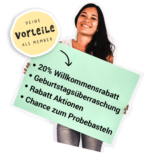 Als Newsletterabonnent*in bekommst du einen 20% Rabattcode in dein E-Mail Postfach geschickt. Außerdem kannst du dich auf Geburtstagsüberraschungen, exklusive Rabatte nur für Member und die Chance aufs Probebasteln freuen.