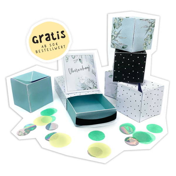 Sichere dir jetzt die Vorlage zum Ausdrucken für die "PoppiBox" Konfetti Schachtel ab 50,- € Einkaufswert.
